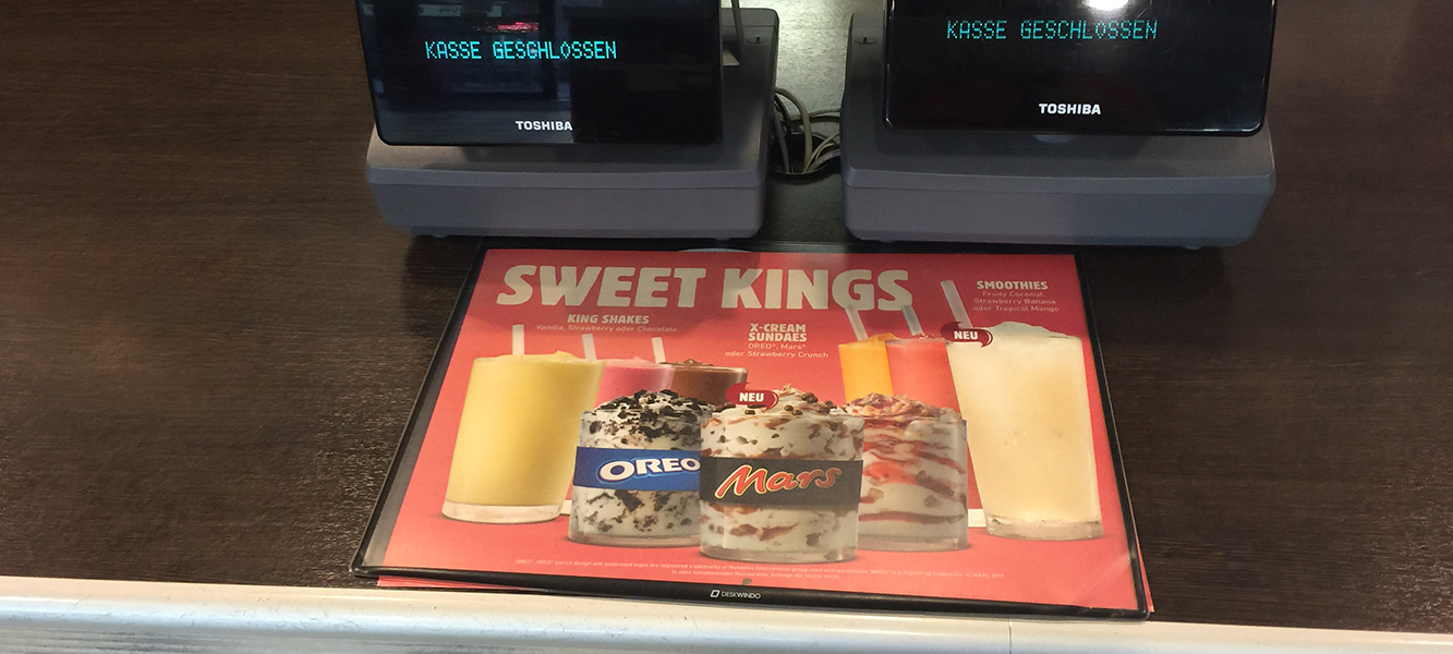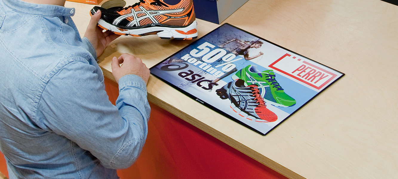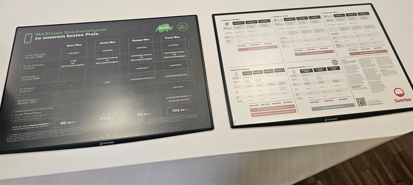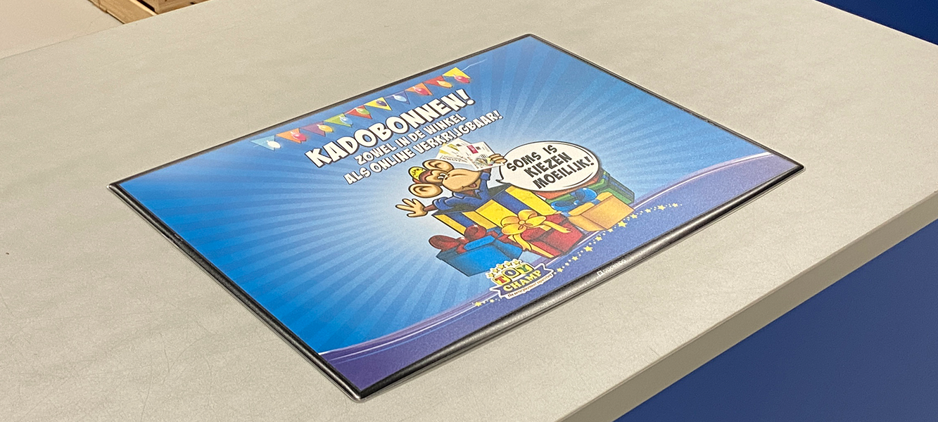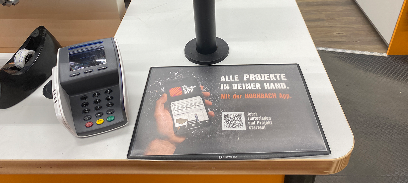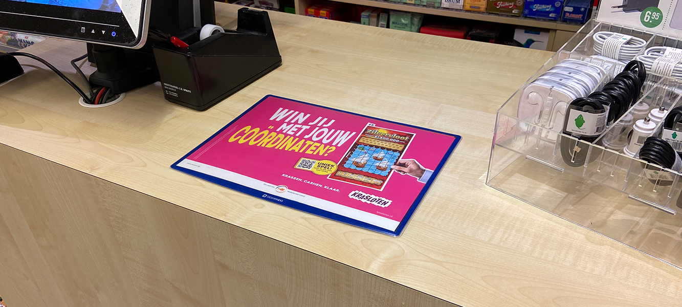 Die DeskWindo Kassenmatte wurde speziell für den Einsatz am Point of Sale entwickelt und bietet eine ausgezeichnete Möglichkeit, Ihre Kundinnen und Kunden direkt an der Kasse zu erreichen. Diese dünne Werbematte liegt flach auf der Theke und lässt sich leicht reinigen sowie jederzeit neu positionieren. Ein weiterer Vorteil der Kassenmatte ist der schnelle und einfache Plakatwechsel.